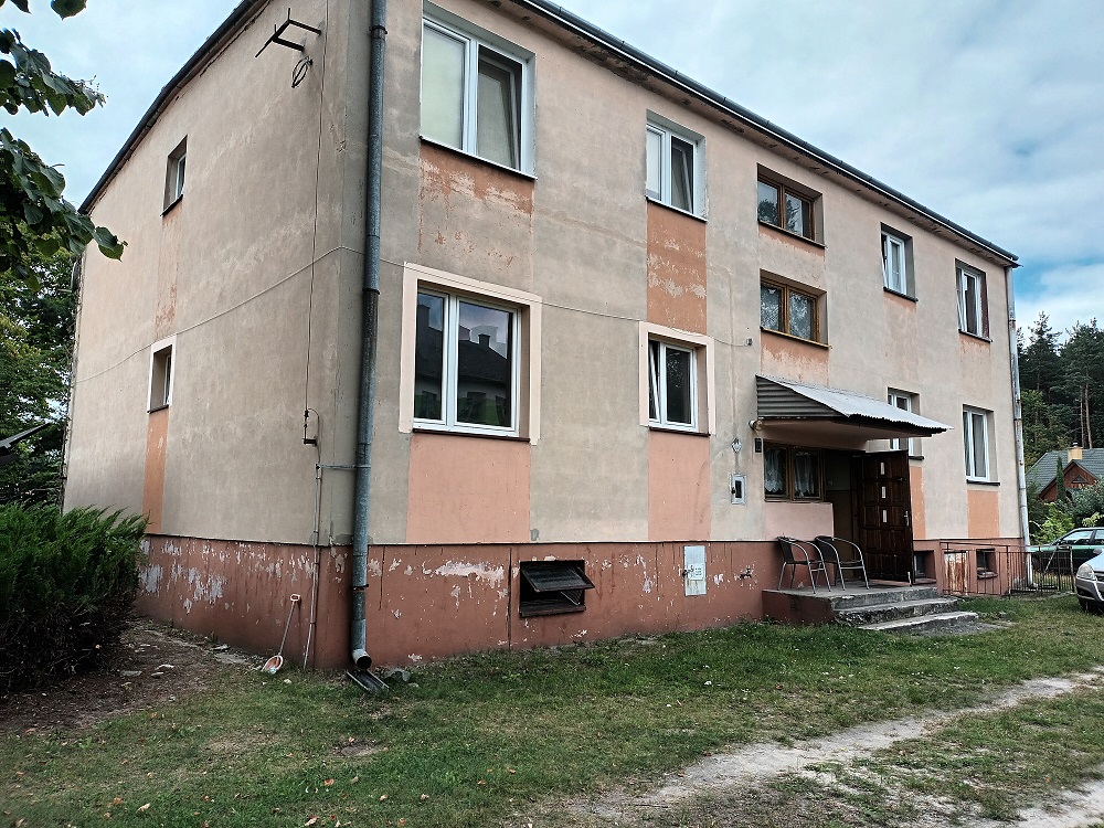 Lokal składa się z pokoju, łazienki z prysznicem i WC, kuchni i przedpokoju – łączna powierzchnia 19,95 m2. Do lokalu przynależy piwnica o pow. 3,53 m2. Na podłogach w pokoju panele, w kuchni, łazience i przedpokoju płytki, okna PCV, centralne ogrzewanie – grzejniki elektryczne, ciepła woda z bojlera elektrycznego. Lokal jest wyposażony w instalację wodociągową, kanalizacyjną i elektryczną. Woda dostarczana jest z gminnego wodociągu, ścieki odprowadzane do gminnej kanalizacji sanitarnej.